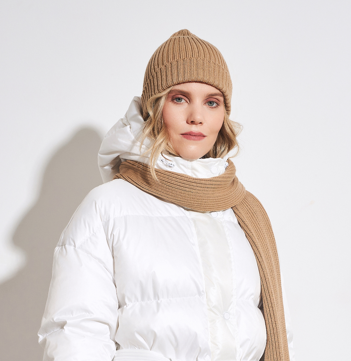 Шапка вязаная из шерсти мериноса светло-бежевая