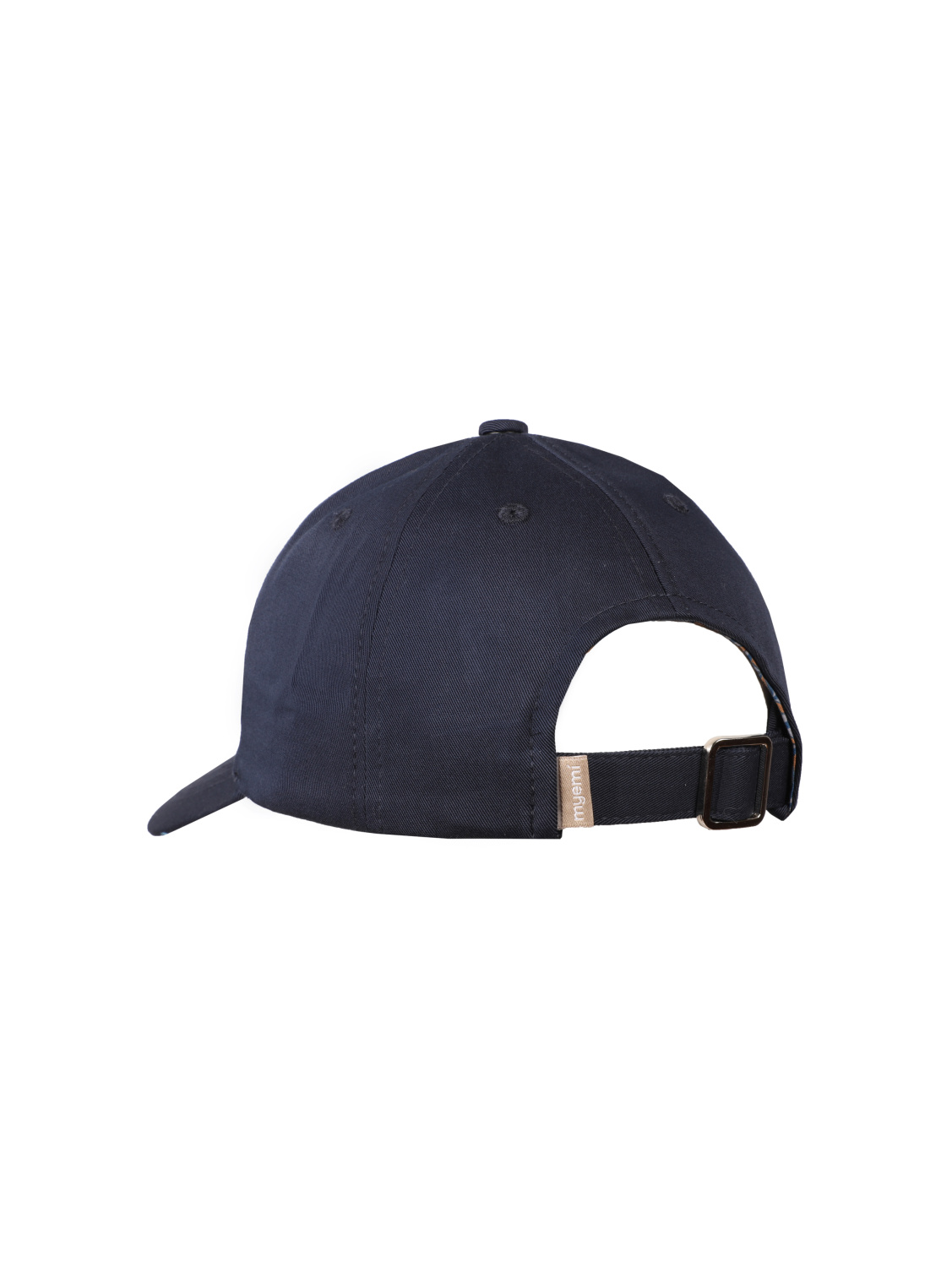 Классическая синяя бейсболка дополнит повседневный образ. Материал из хлопка отлично пропускает воздух. Жесткий козырек хорошо держит форму, а ремешок с пряжкой помогает отрегулировать объем бейсболки по размеру головы.