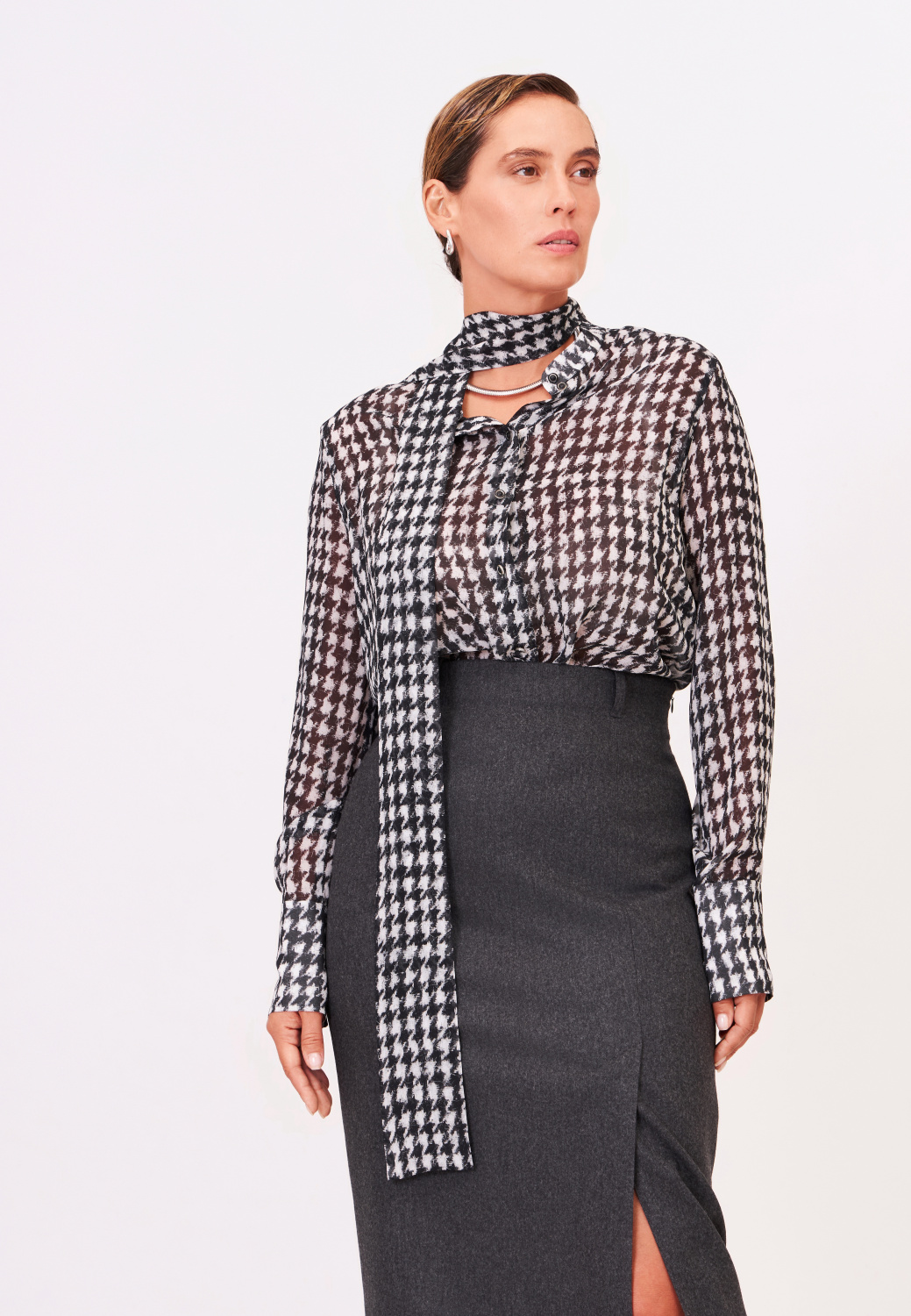 Прозрачная блуза с принтом гусиная лапка