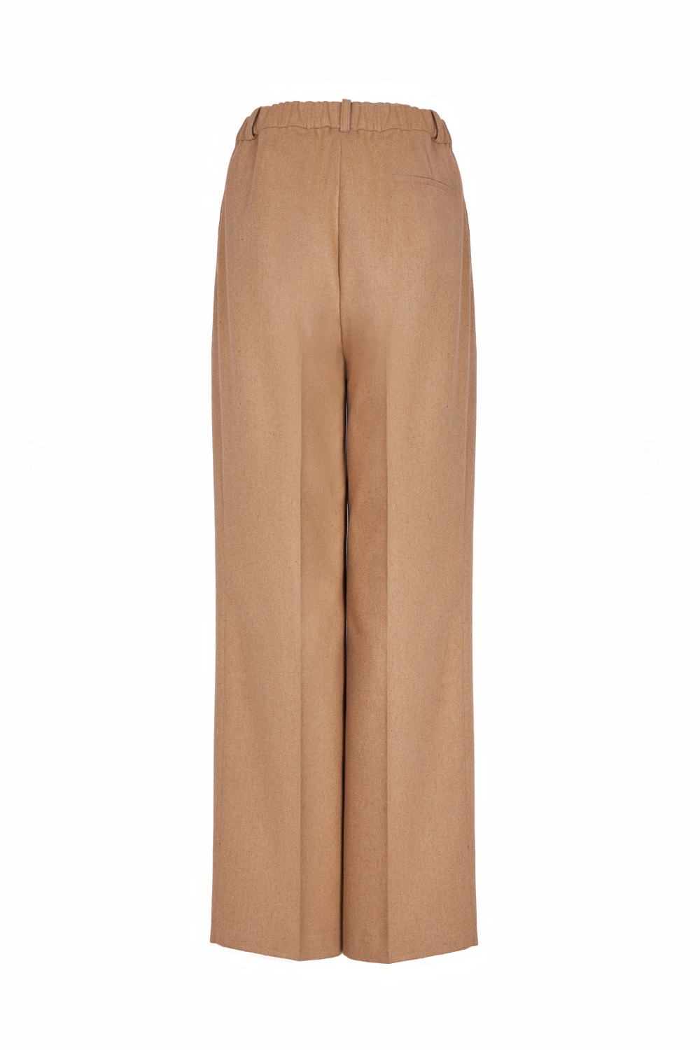 Широкие брюки - актуальная базовая модель для любого гардероба. Натуральная шерсть отлично сохраняет тепло и держит форму. Эластичный пояс по спинке подстроится под любой тип фигуры. Шерсть может быть чувствительной для кожи, поэтому мы дополнили изделие шелковистой подкладкой.