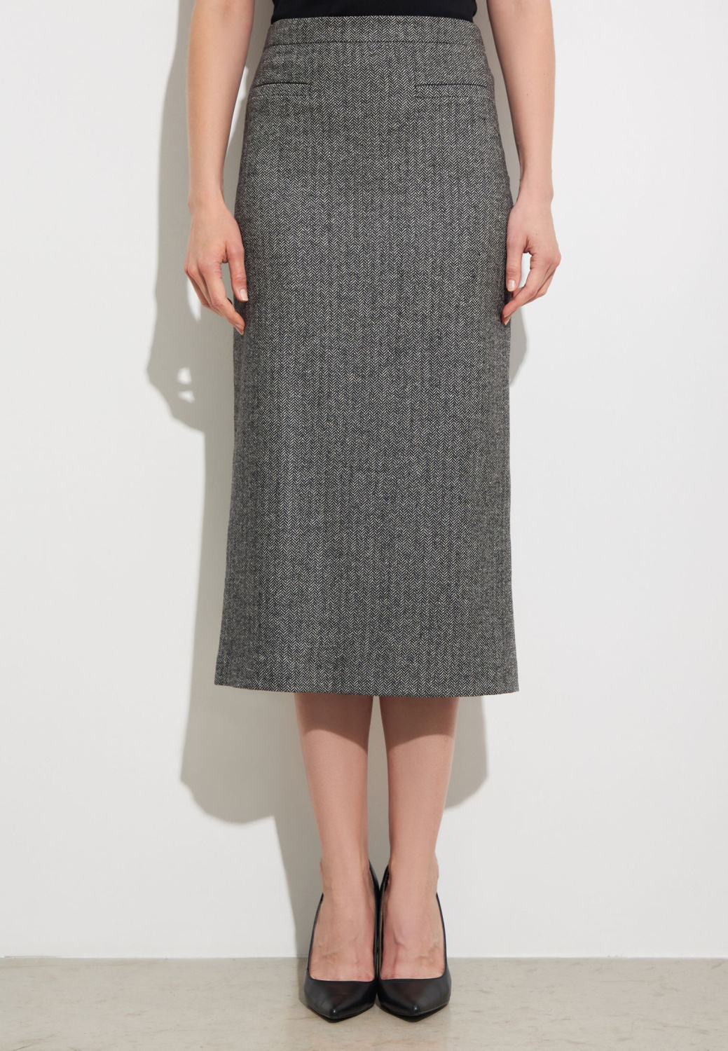 Прямая юбка миди - модель, которая отлично подойдет для создания стильного офисного образа. Ткань из шерсти сохраняет тепло и позволяет коже дышать. Натуральная шерсть может быть чувствительной для кожи, поэтому мы дополнили изделие приятной к телу подкладкой. Дополните образ жакетом из комплекта.